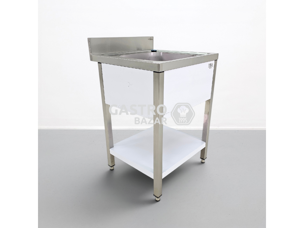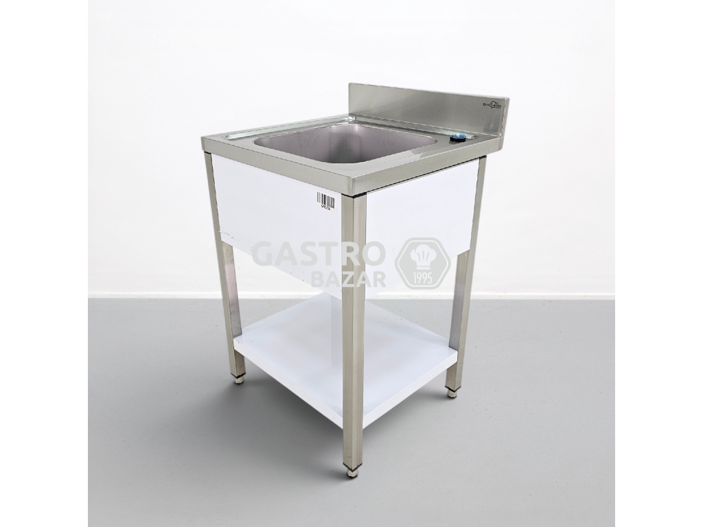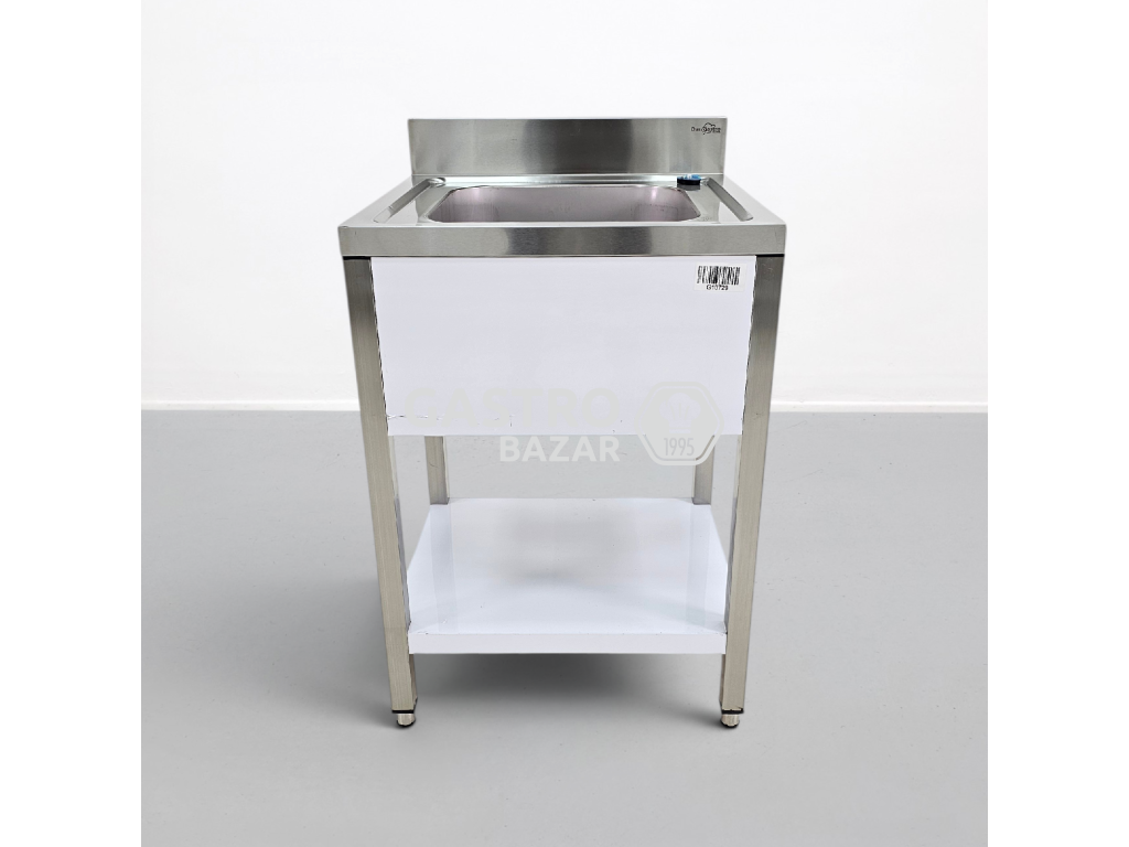 Nerezový mycí stůl PREMIUM s jedním dřezem, spodní policí a zadním lemem 0,6 m