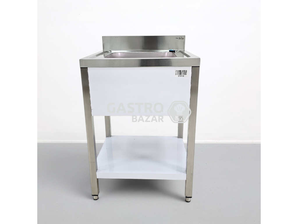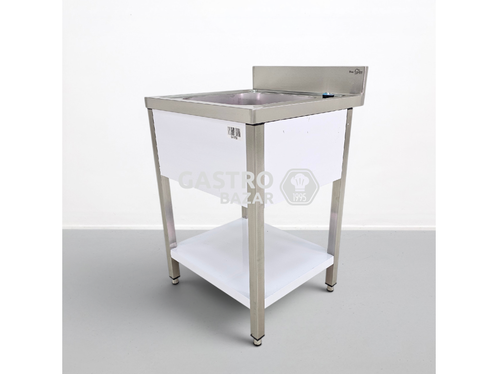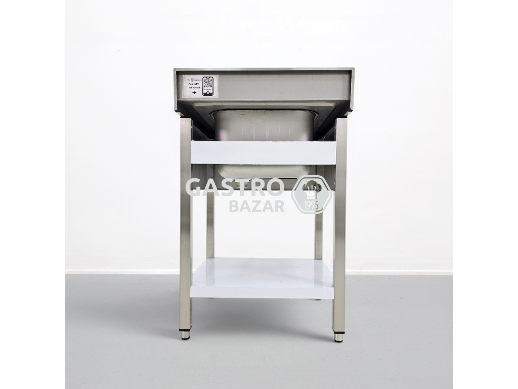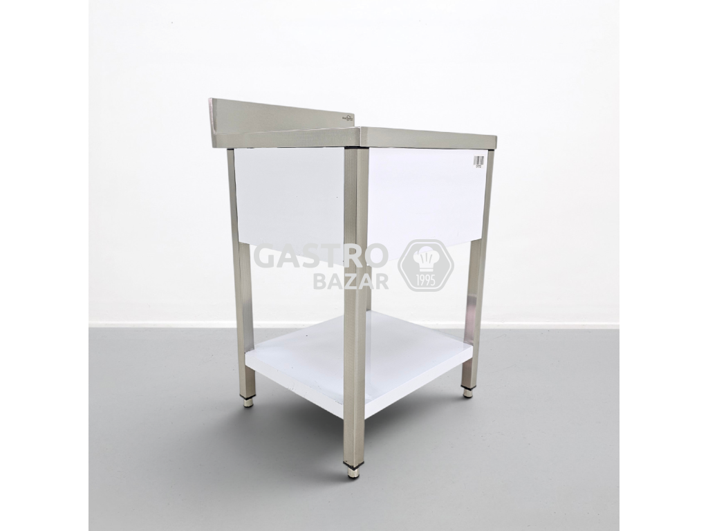 Nerezový mycí stůl PREMIUM s jedním dřezem, spodní policí a zadním lemem 0,6 m