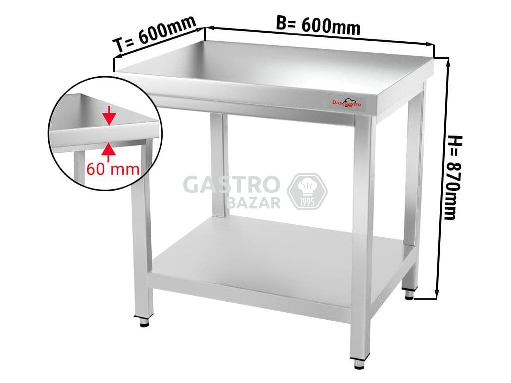 Nerezový pracovní stůl ECO - 0,6 x 0,6 m - s policí