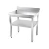 - Nerezový pracovní stůl PREMIUM se spodní policí a zadním lemem