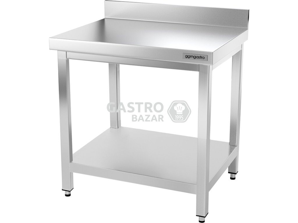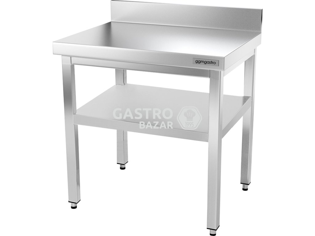 - Nerezový pracovní stůl PREMIUM se spodní policí a zadním lemem