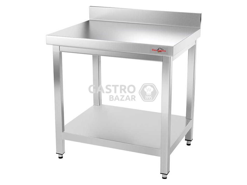- Nerezový pracovní stůl PREMIUM se spodní policí a zadním lemem