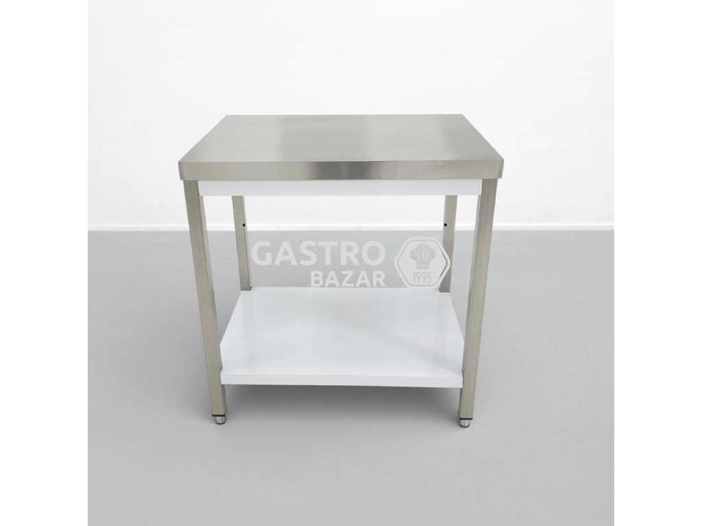 Nerezový pracovní stůl se spodní policí v prémiové kvalitě pro profesionální gastro provozy. Nabízí stabilní šroubovanou konstrukci, hygienický povrch pro snadnou údržbu a praktický prostor pro odkládání nádobí, surovin nebo přepravek. Pracovní deska je vyztužená MDF, což zvyšuje pevnost a stabilitu.