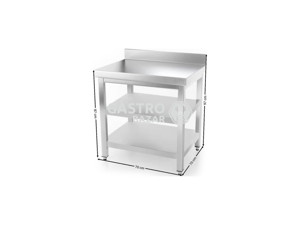 Nerezový pracovní stůl pro profesionální provozy. Stabilní konstrukce, snadná údržba a praktická spodní police z něj dělají ideální volbu do gastro kuchyní, přípraven i zázemí.