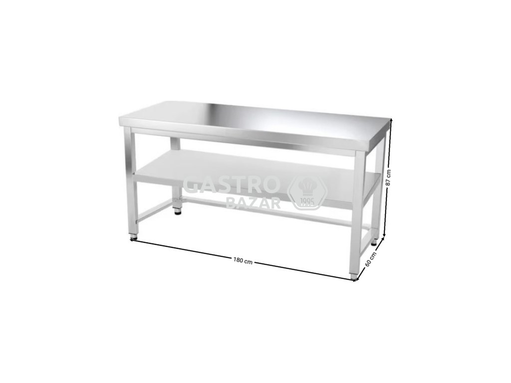 Nerezový pracovní stůl se spodní policí a trnoží bez zadního lemu - 1800 x 600 x 870 mm