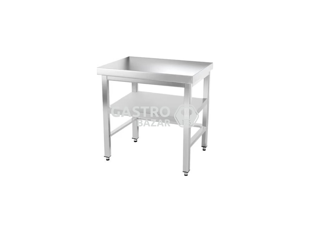 Nerezový pracovní stůl se spodní policí a trnoží bez zadního lemu - 600 x 600 x 870 mm