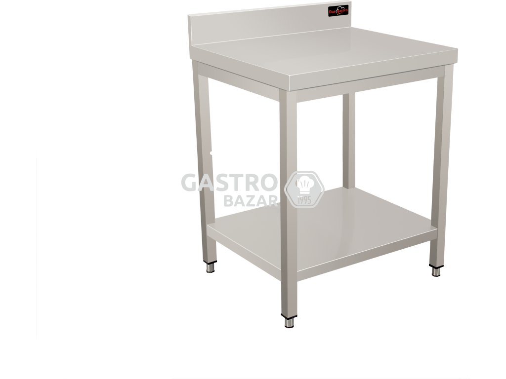 Nerezový pracovní stůl PREMIUM se spodní policí a zadním lemem 0,6 m