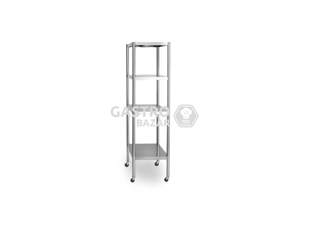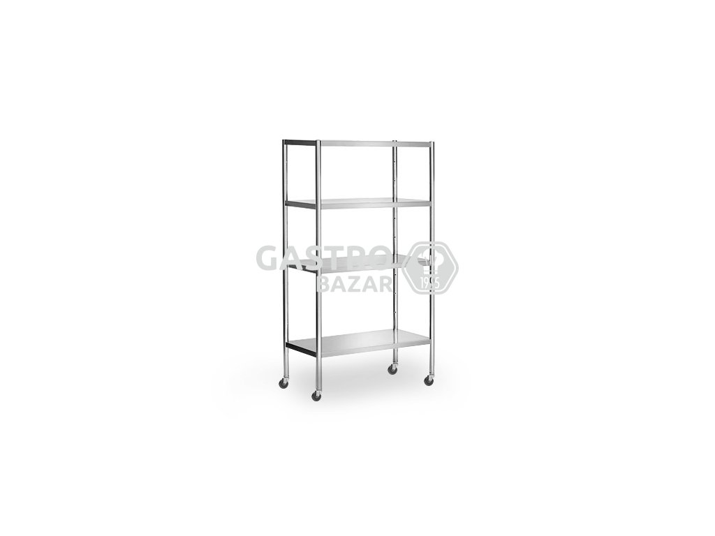 Nerezový regál 4 police a kolečka 1 000 x 500 x 1 800 mm