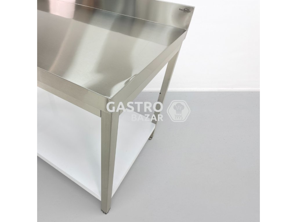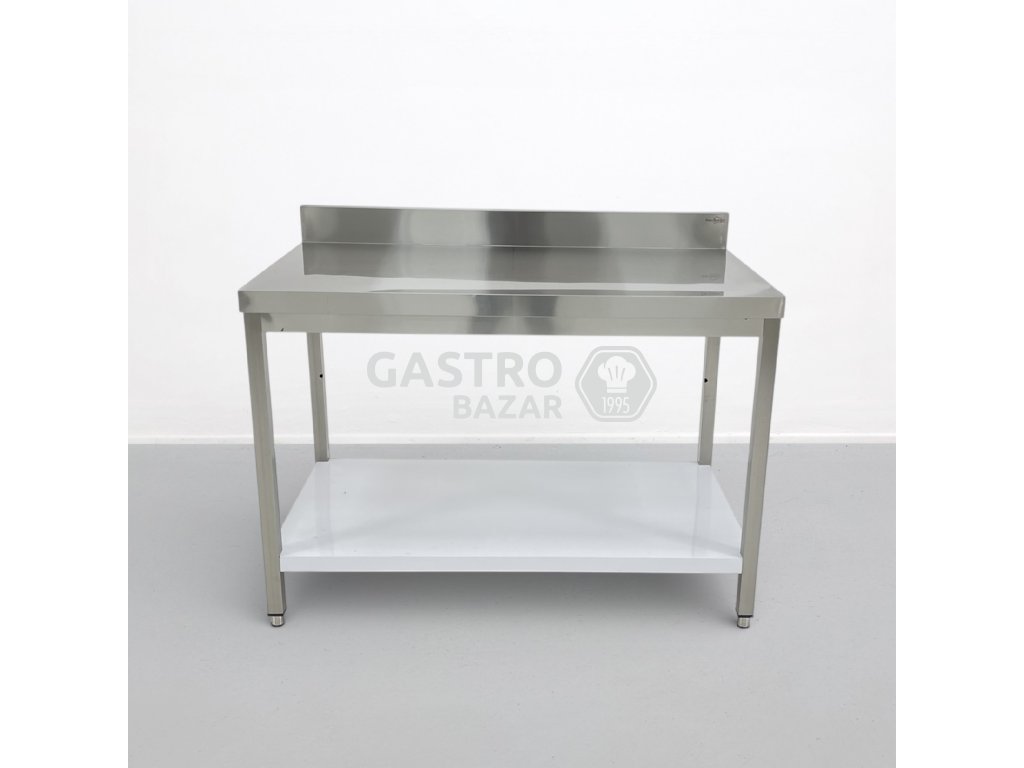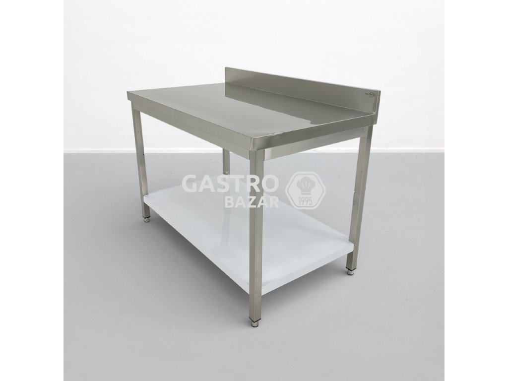 Nabízíme nerezový pracovní stůl se spodní policí a zadním lemem, určený pro profesionální gastronomické provozy. Stůl má robustní šroubovanou konstrukci a velmi vysokou nosnost.