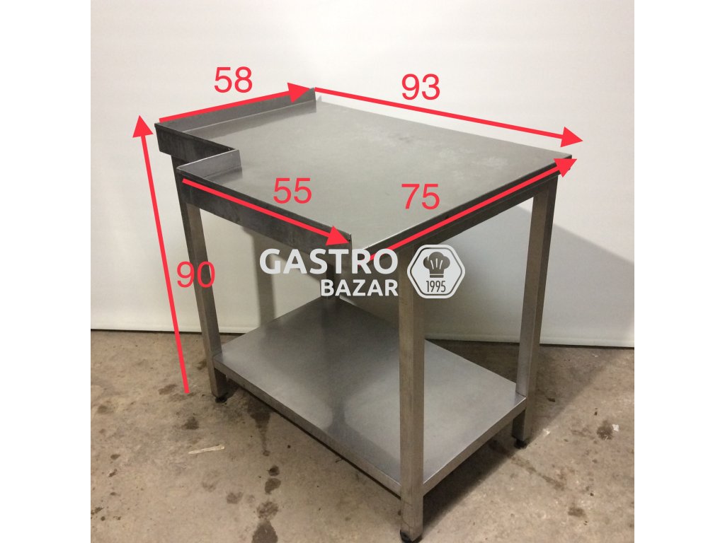 Použitý nerezový stůl atypického tvaru.