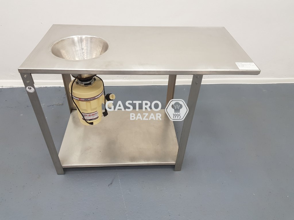 Použitý nerezový stůl s drtičem odpadů 120x61x85
