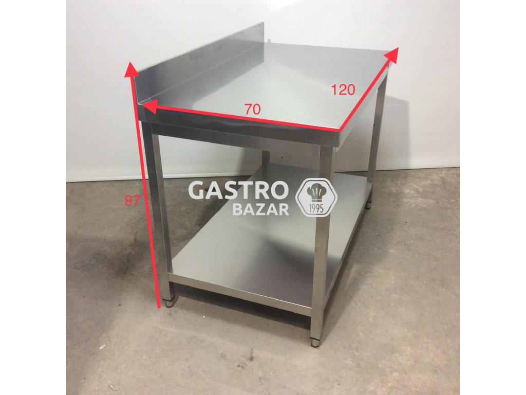 Nový nikdy nepoužitý nerezový stůl se zadním lemem - velmi pěkné kvalitní provedení