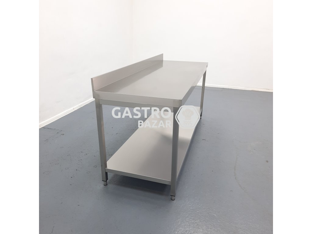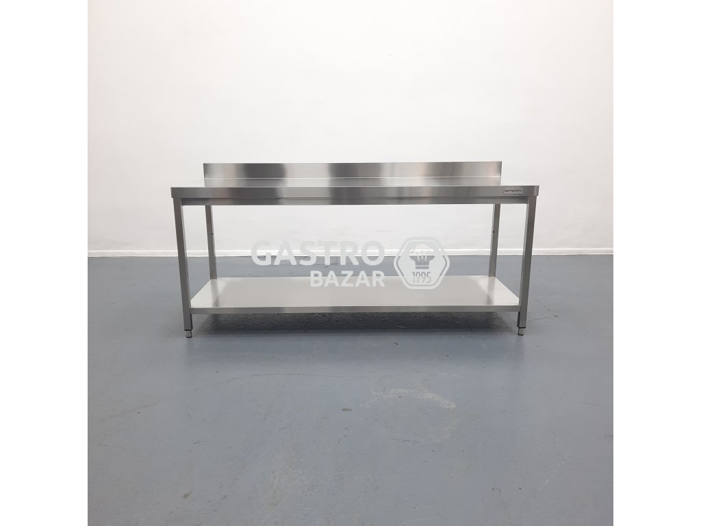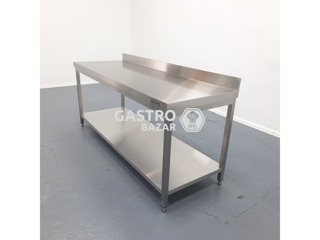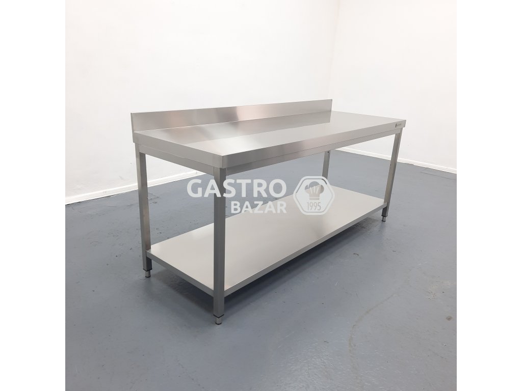 Nový nikdy nepoužitý nerezový stůl se zadním lemem - velmi pěkné kvalitní provedení