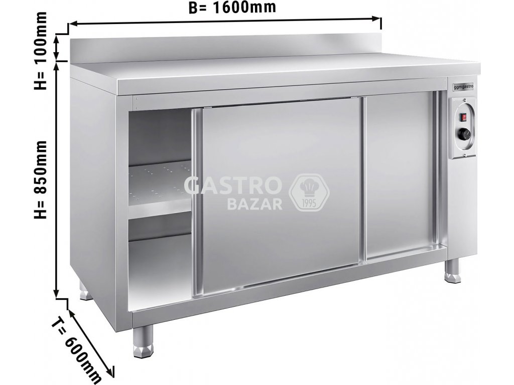 Ohřevná skříň PREMIUM - 1,6 m se zadním lemem