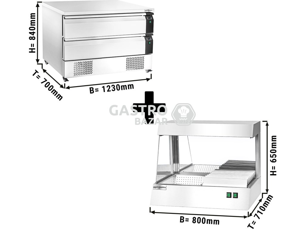 Ohřívač hranolek s mrazící podestavbou se 2 zásuvkami - 1,23 m