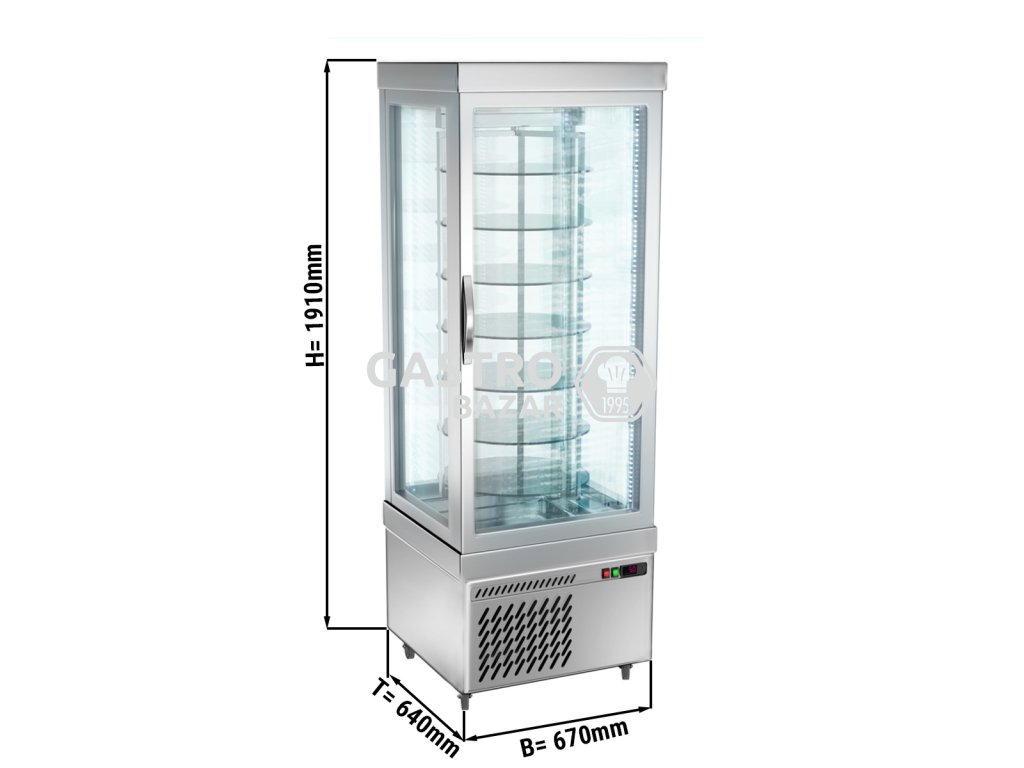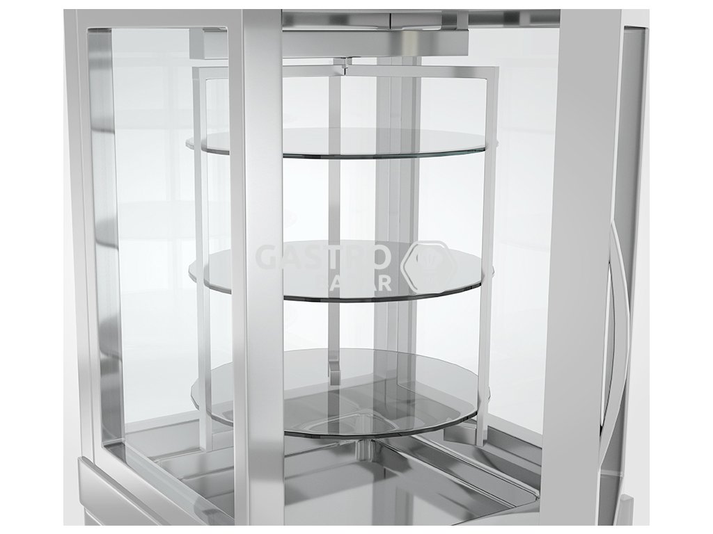 Panoramatická vitrína se 7 otočnými skleněnými policemi