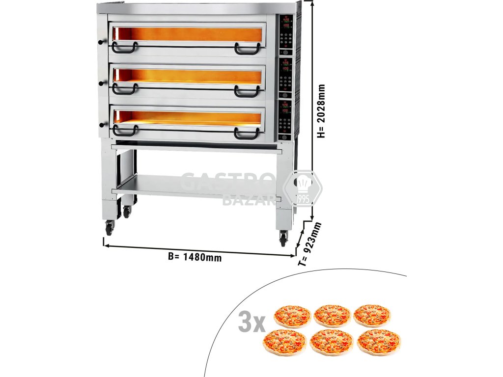 Pec na pizzu s digestoří a podestavbou - 6 + 6 + 6 Ø 34 cm