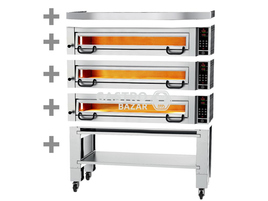 Pec na pizzu s digestoří a podestavbou - 9 + 9 + 9 Ø 34 cm