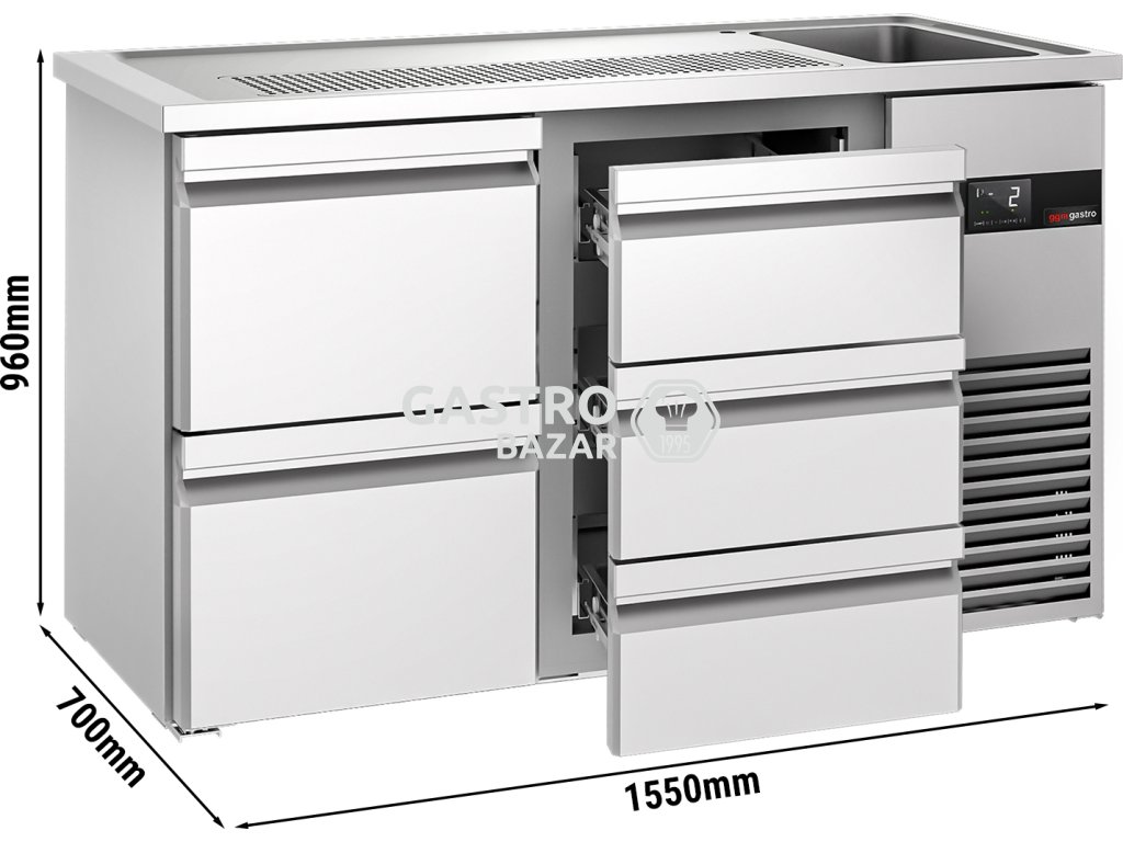 Pivní pult 1,55 x 0,7 m - se 2 zásuvkami 1/2 a 3 1/3 zásuvkami