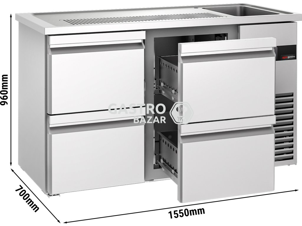 Pivní pult 1,55 x 0,7 m - se 4 1/2 zásuvkami