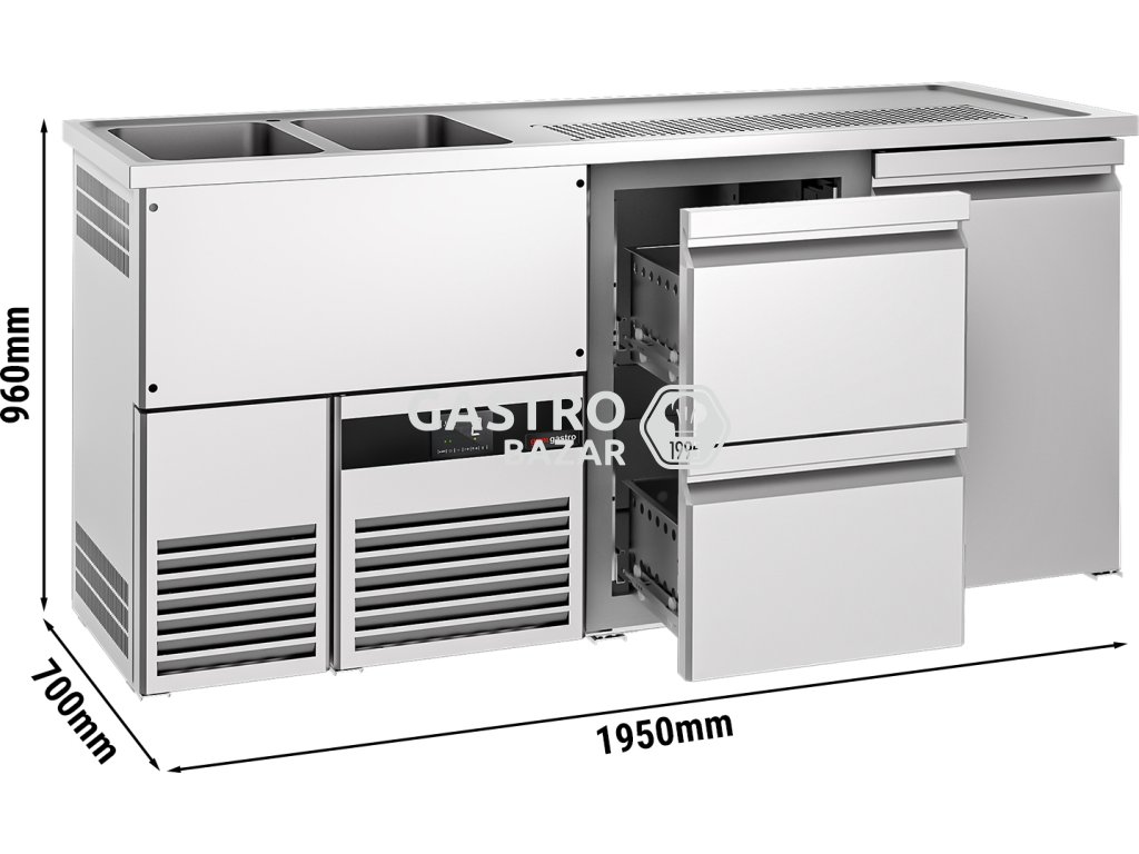 Pivní pult 1,95 x 0,7 m - 1 dveře s 2 1/2 zásuvkami