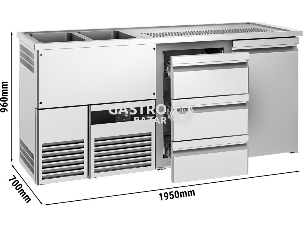 Pivní pult 1,95 x 0,7 m - 1 dveře se 3 zásuvkami 1/3