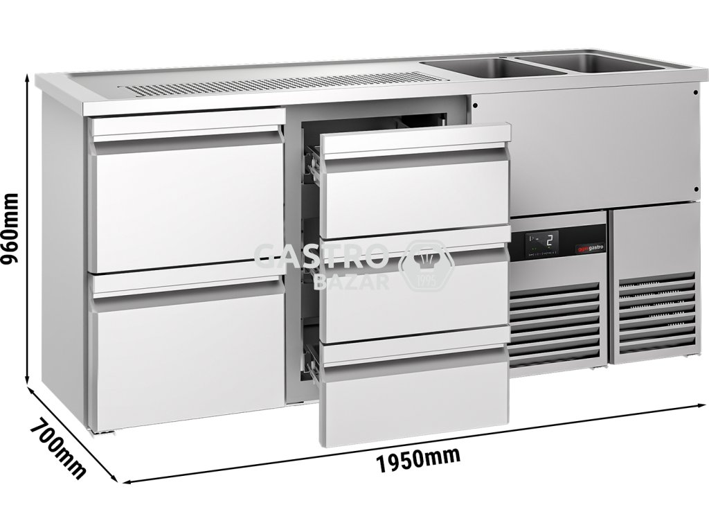 Pivní pult 1,95 x 0,7 m - se 2 zásuvkami 1/2 a 3 1/3 zásuvkami
