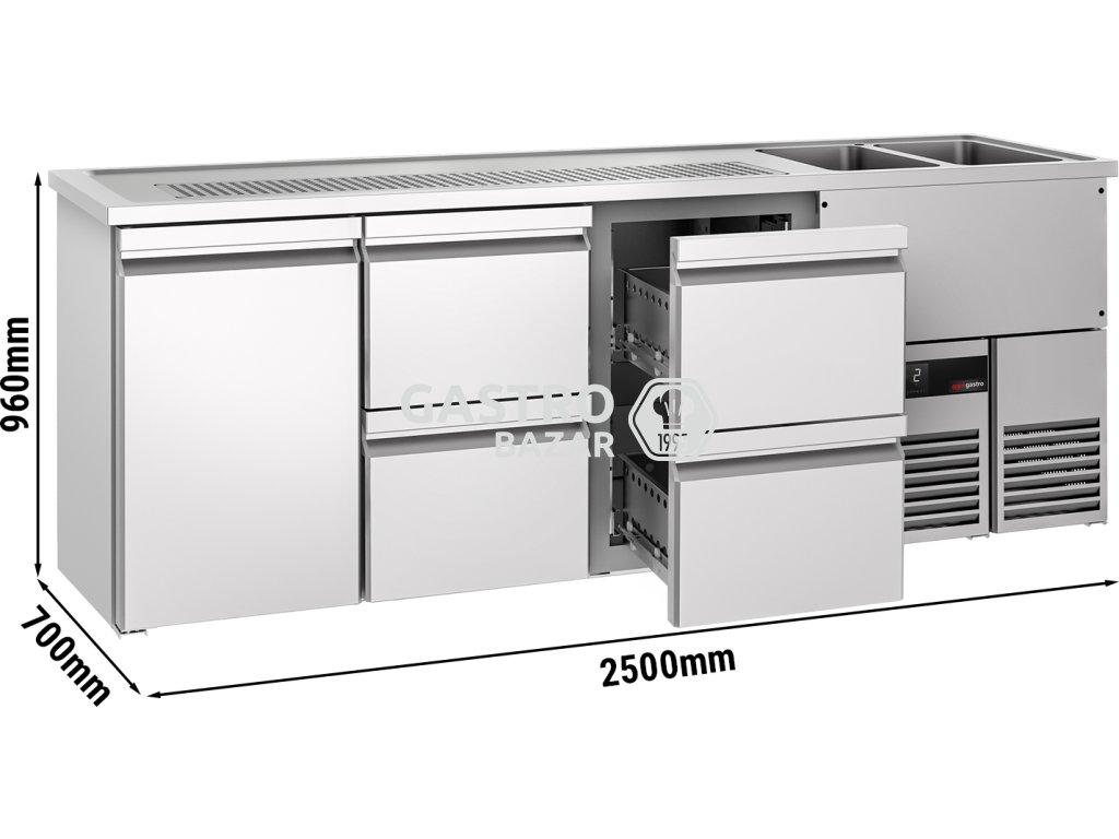 Pivní pult - 2,5 x 0,7 m - 1 dveře se 4 1/2 zásuvkami