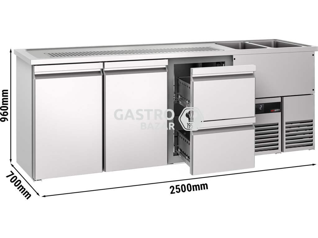 Pivní pult - 2,5 x 0,7 m - 2 dveře se 2 1/2 zásuvkami