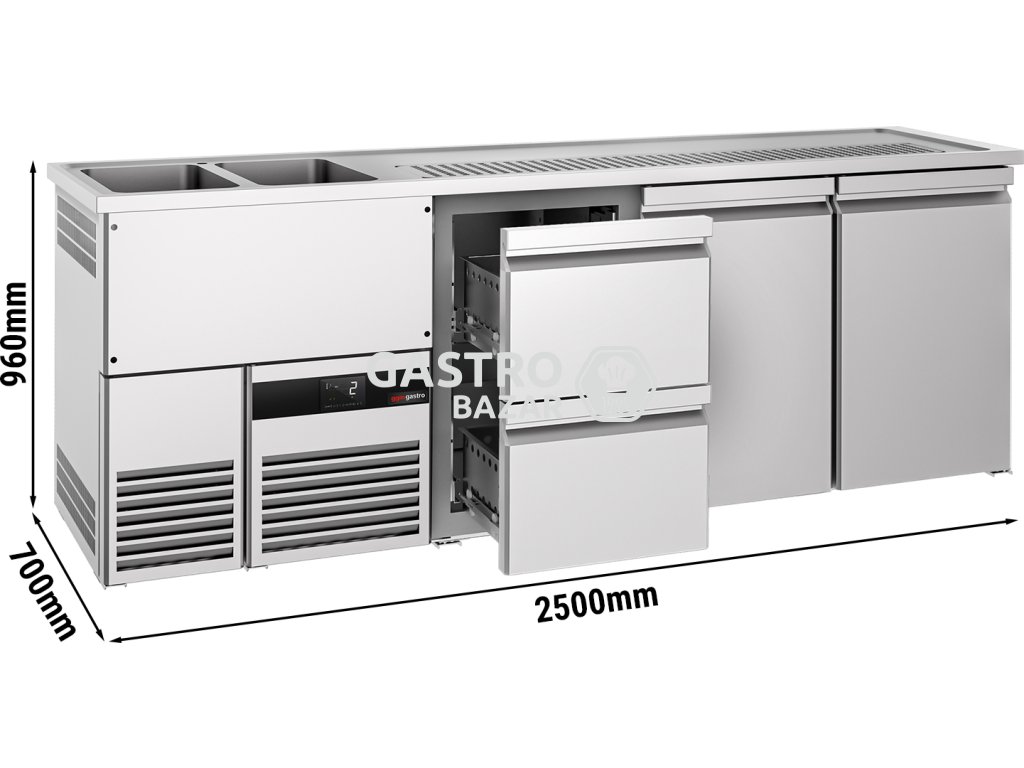 Pivní pult - 2,5 x 0,7 m - 2 dveře se 2 1/2 zásuvkami