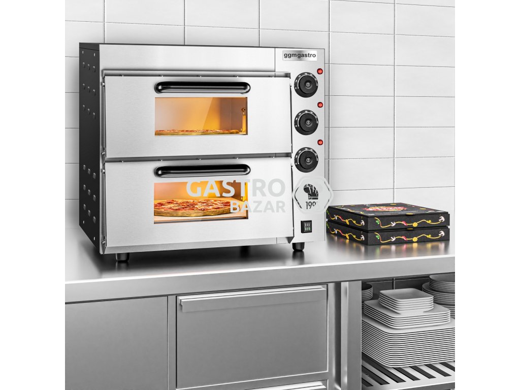 - 2 pečicí komory pro 4+4 pizzy s Ø 20 cm