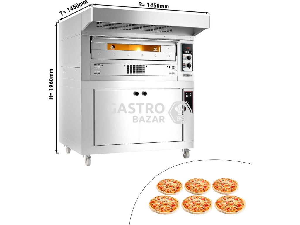 Plynová pizza pec s digestoří a kynárnou - 6x 35 cm