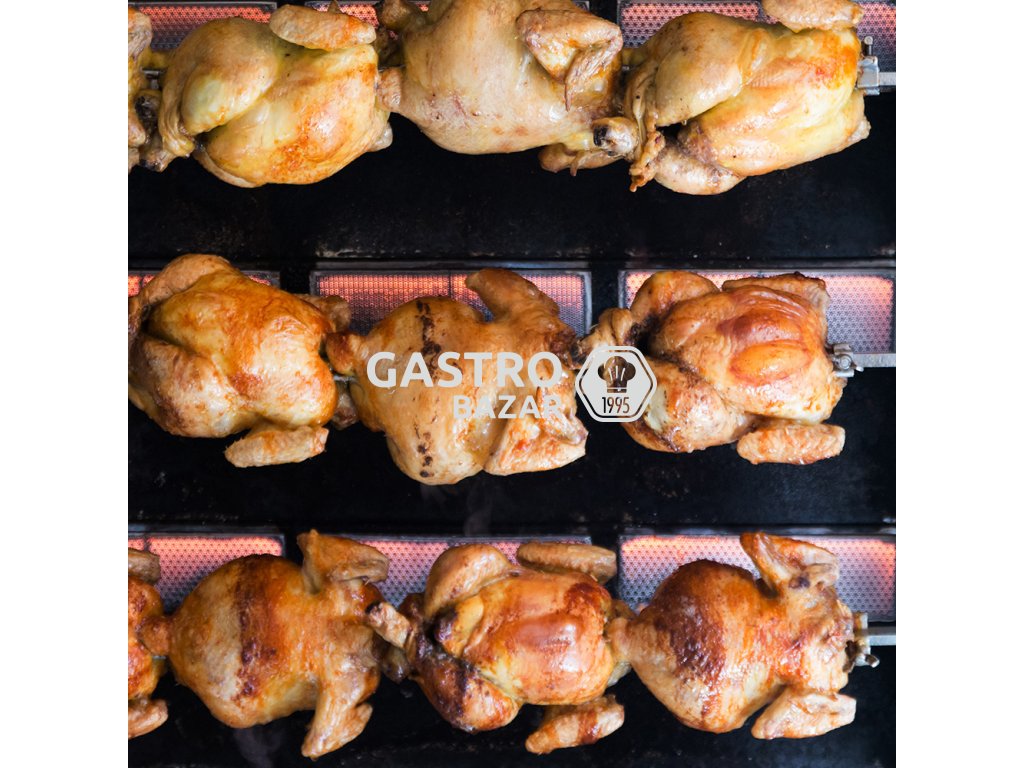 Plynový gril na kuřata s 5 rožni pro 30 kuřat