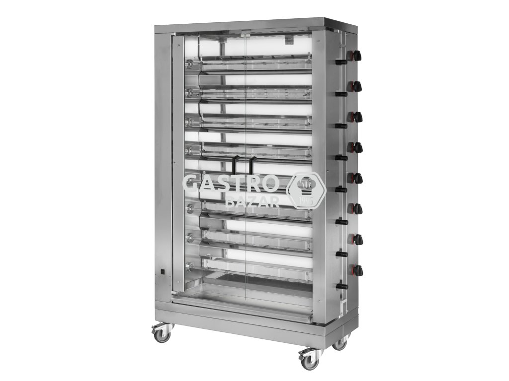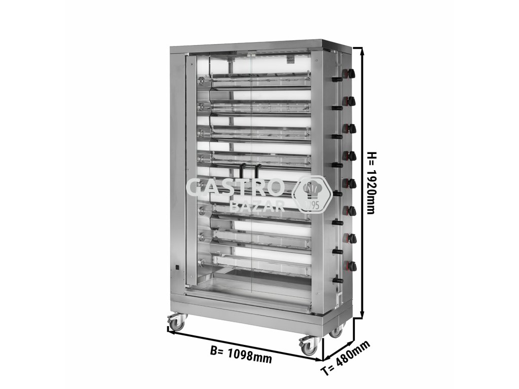 Plynový gril na kuřata ECO s 8 rožni pro 48 kuřat - 1098 x 480 x 1992 mm