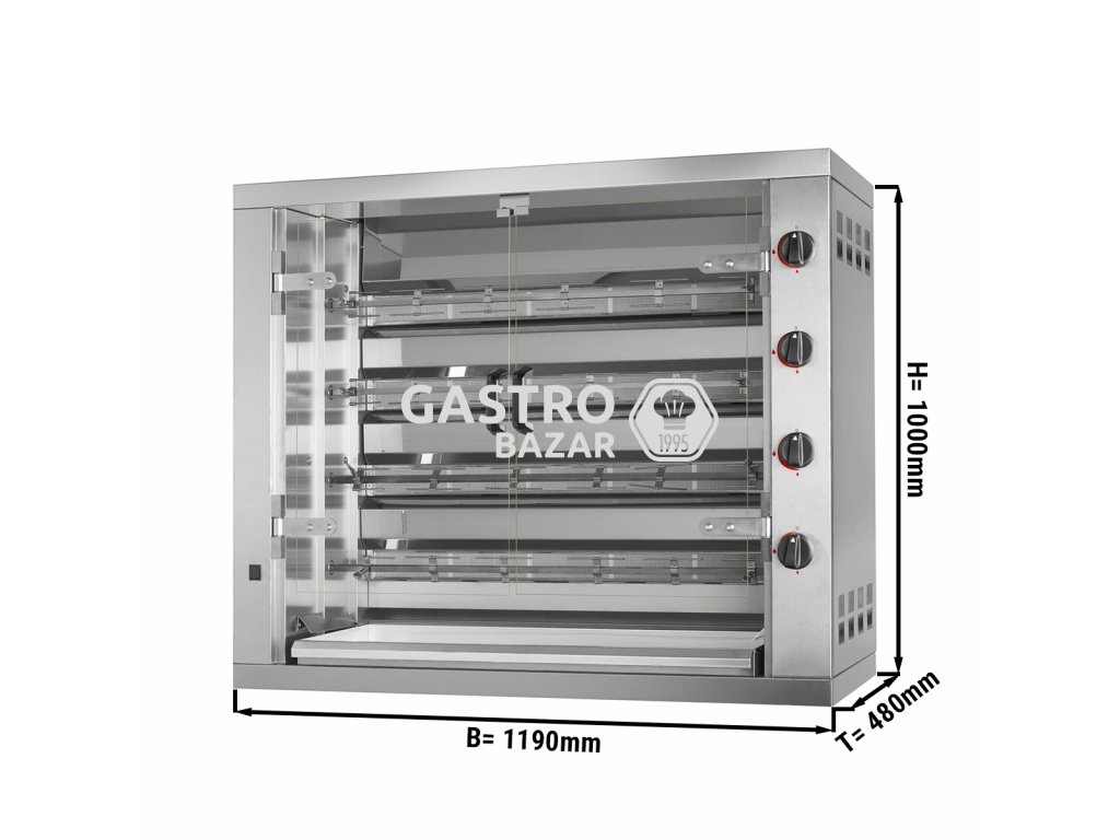 Plynový gril na kuřata PREMIUM se 4 rožni pro 24 kuřat - 1100 x 480 x 1000 mm