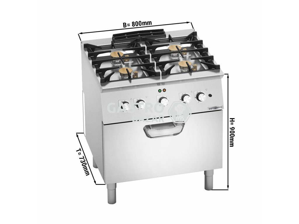 Plynový sporák -4 hořáky (20 kW) a elektrickou troubou (4,7 kW)