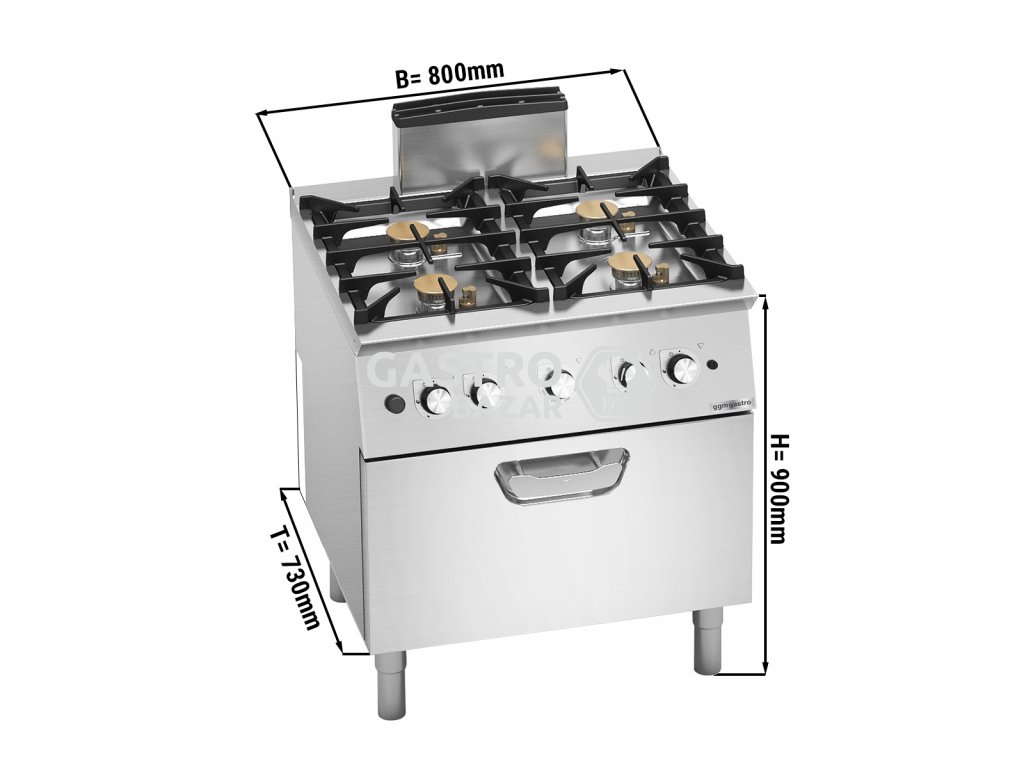 Plynový sporák - 4 hořáky (20 kW) a plynovou troubou (7,8 kW)