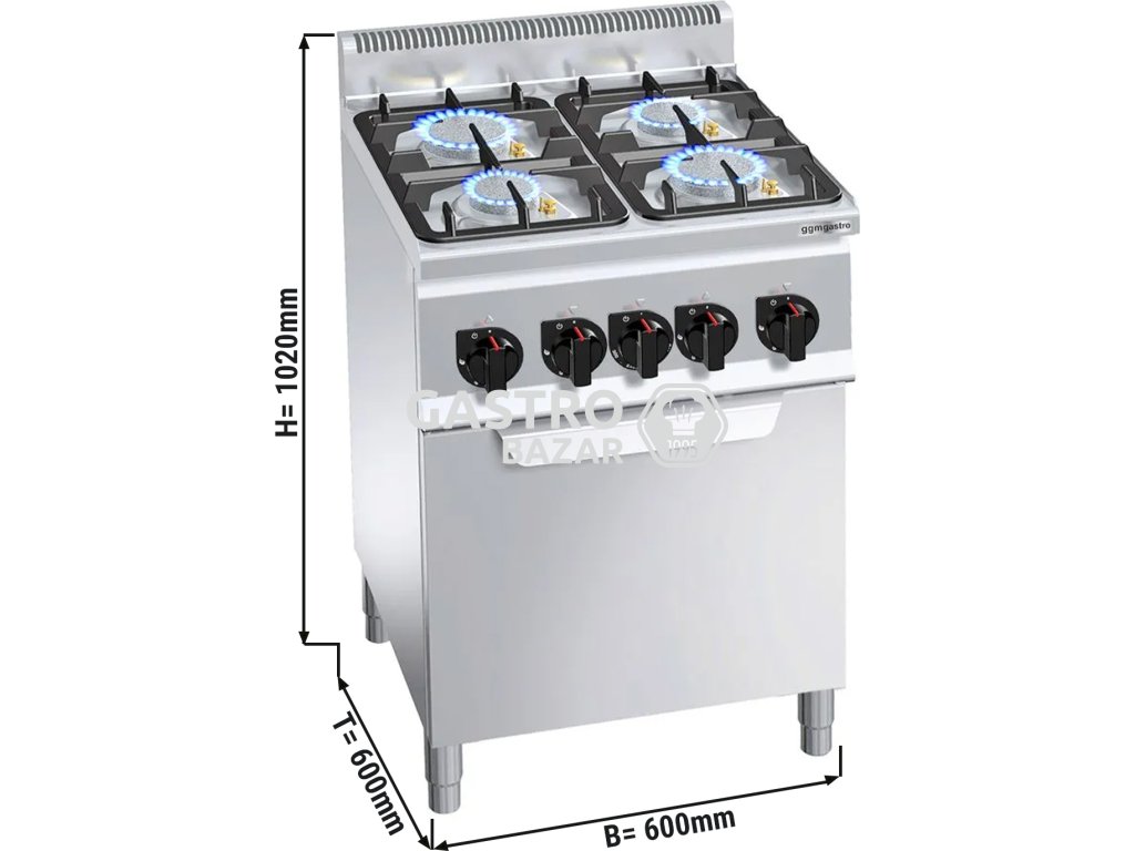 Plynový sporák 4x hořák (19 kW) + elektrická pec (3 kW)
