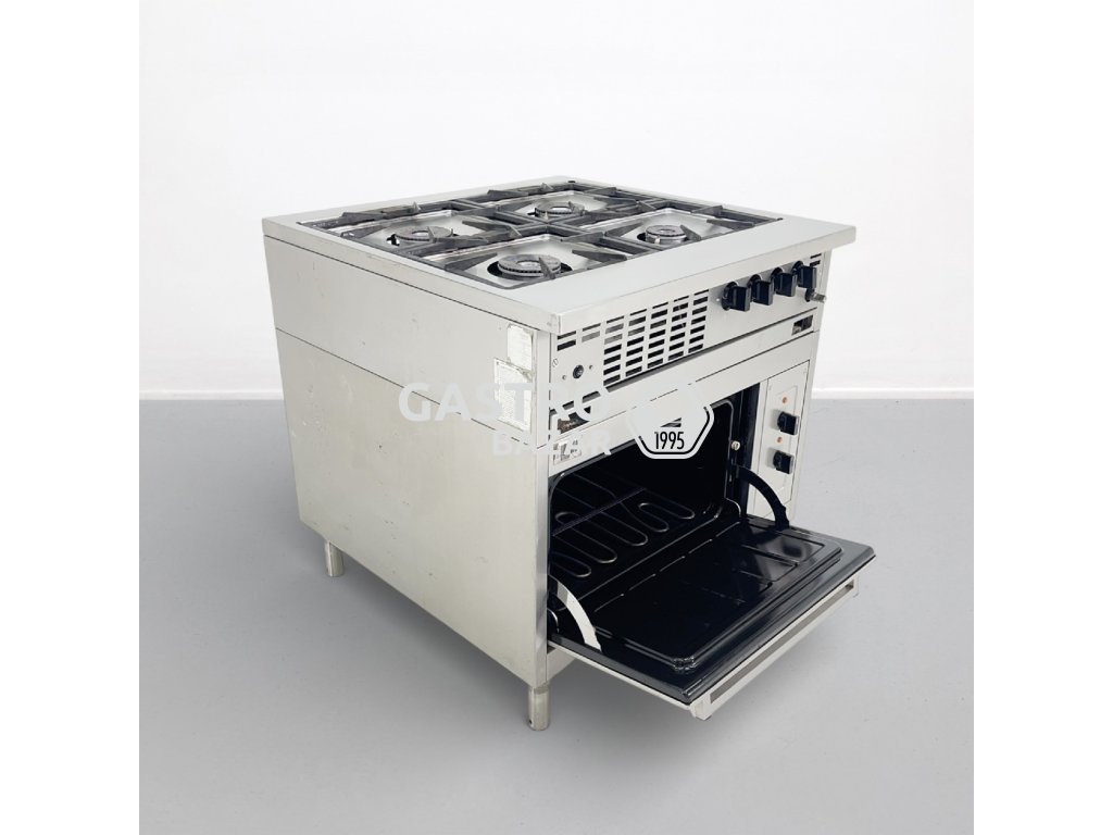 Stav: jedná se o bazarový (použitý) profesionální sporák – nese známky používání. Provedeno dílenské čištění a vyčištění plynových cest. Bez dalších oprav.