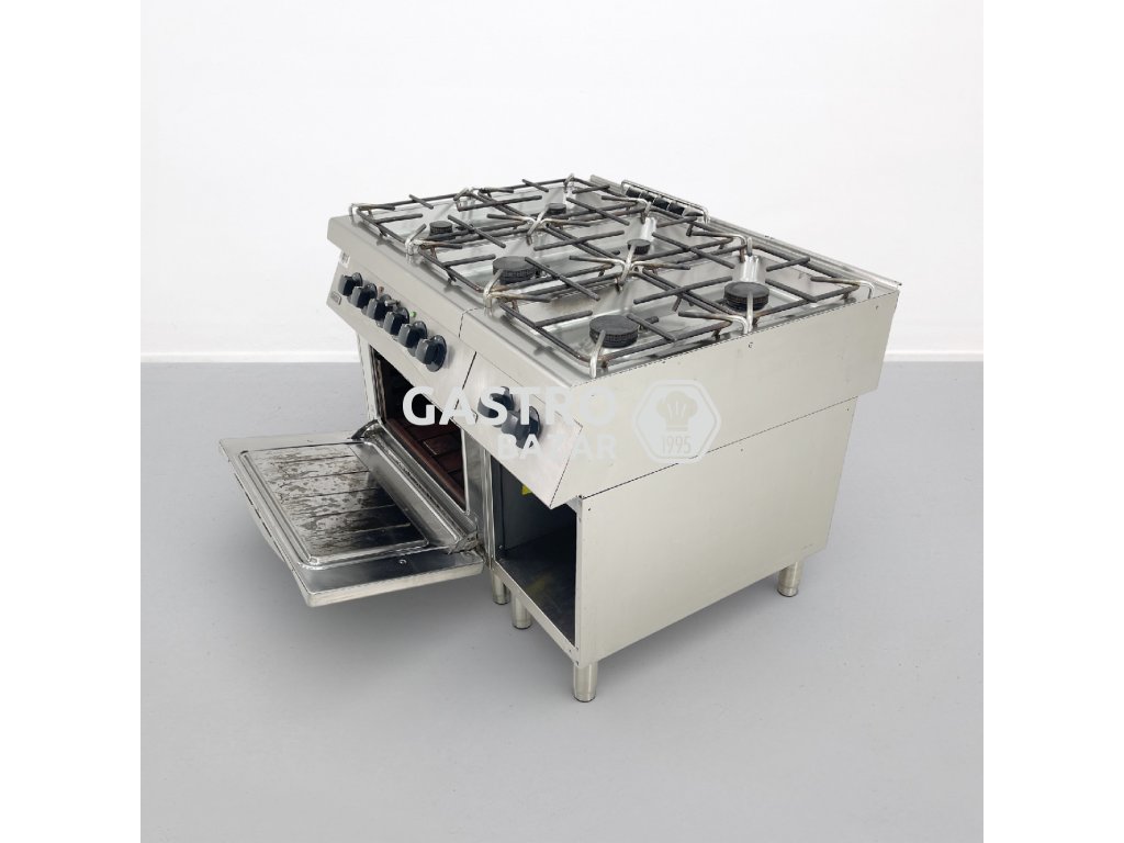 Sporák je určen pro připojení na zemní plyn, trouba je elektrická s vysokým výkonem, vhodná pro intenzivní provoz.