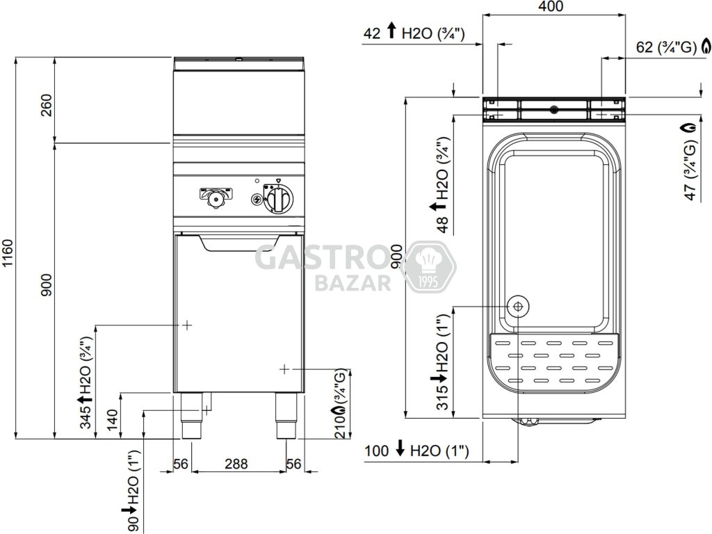 Plynový vařič těstovin 40 litrů (12 kW)