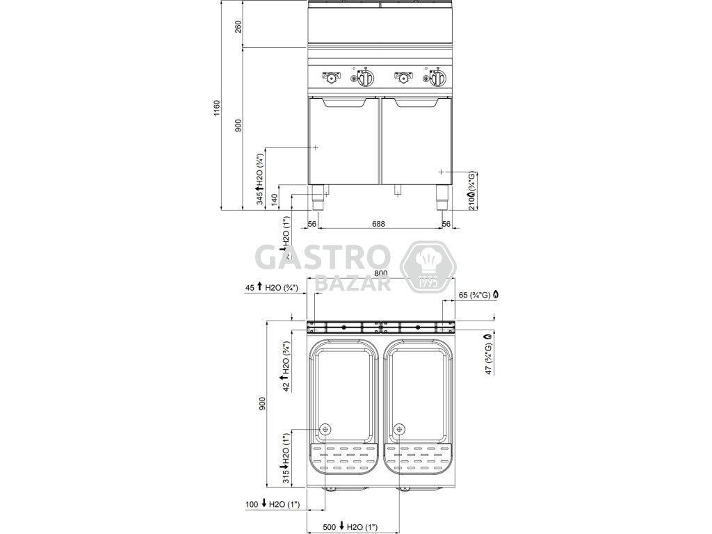 Plynový vařič těstovin 80 litrů (24 kW)