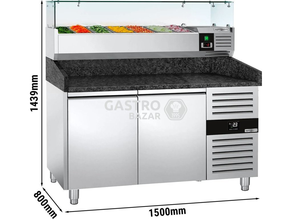 PREMIUM chladící stůl na pizzu - 1,5 x 0,8 m - se 2 dvířky