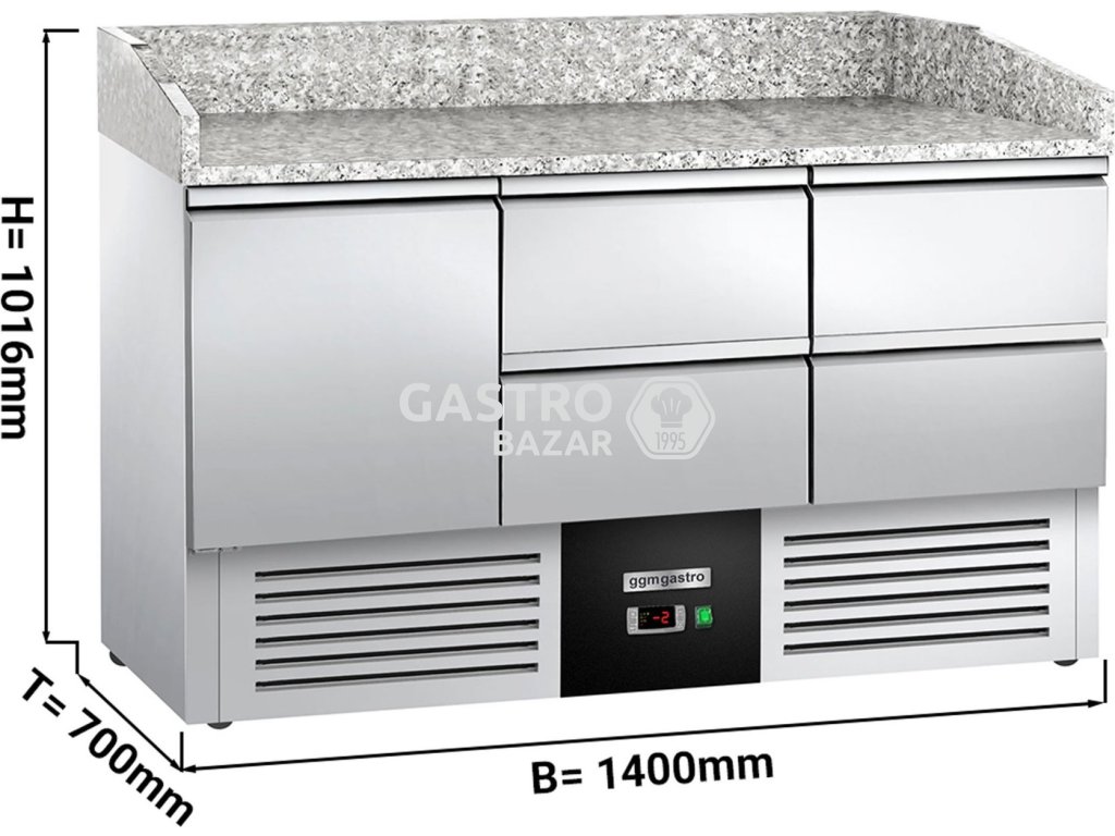 PREMIUM - chladící stůl na pizzu 4 x 0,7 m - s 1 dvířky a 4 zásuvkami 1/2