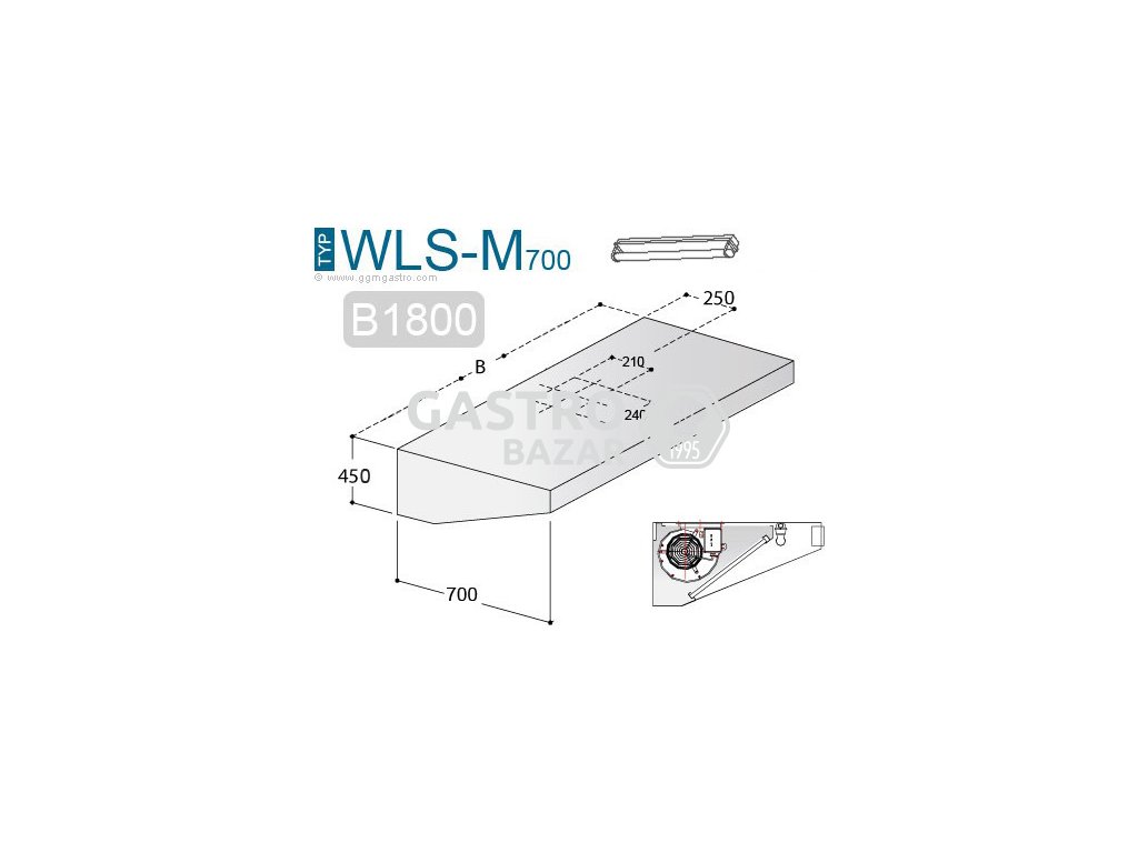 Nástěnná digestoř 1,8 m - s motorem, regulátorem, filtrem a svítidlem