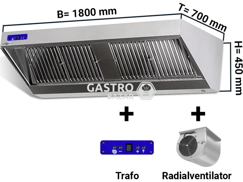 Premium digestoř nástěnná 1,8 m - s motorem, ovladačem, filtrem a světlem- hloubka 700 mm