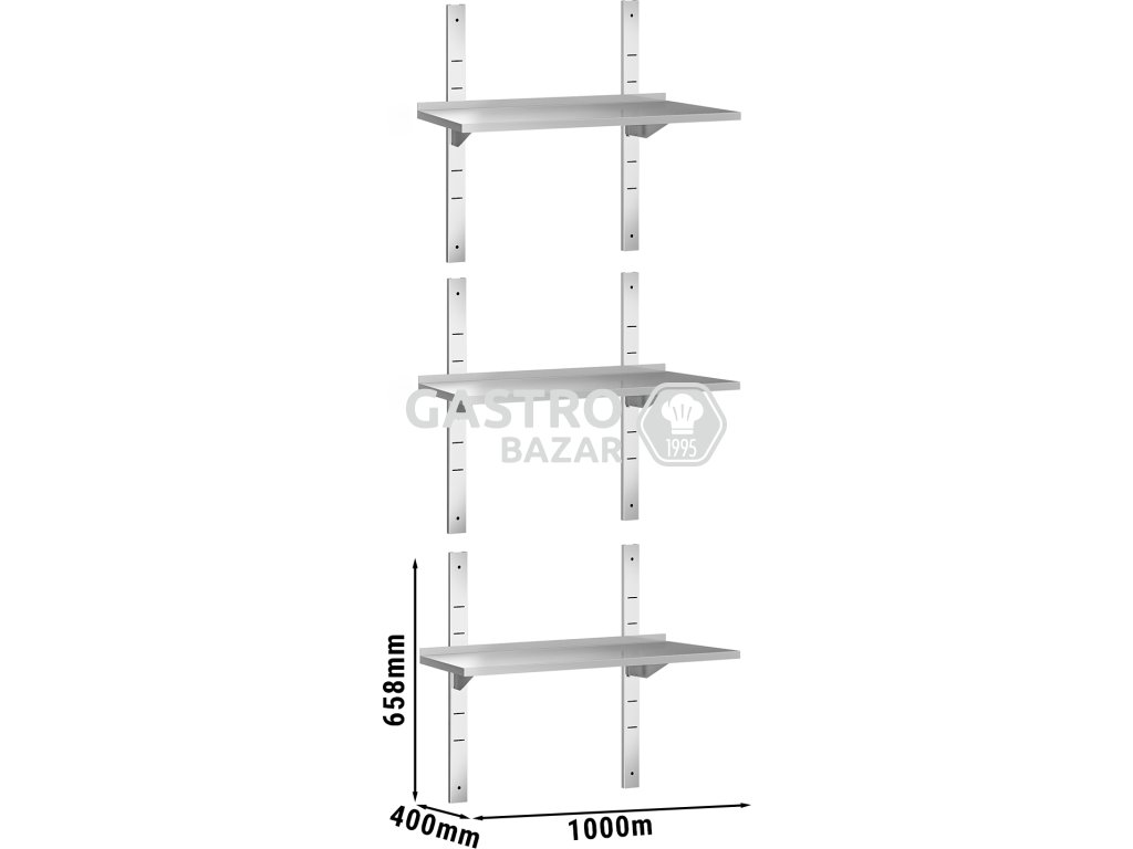 PREMIUM Nástěnná police - 1,0 x 0,4m - 3-patrová