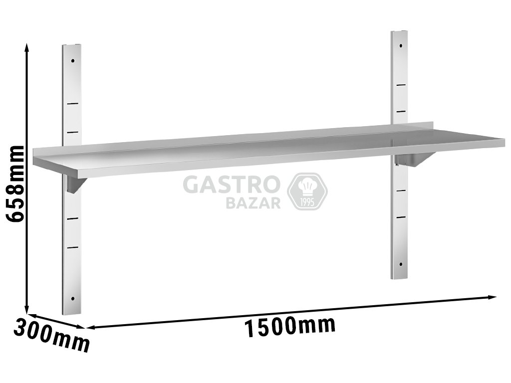 PREMIUM Nástěnná police - 1,5 x 0,3m - 1-patrová