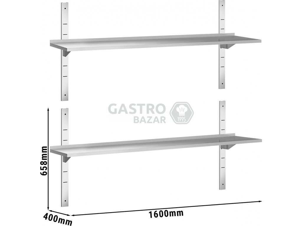 PREMIUM Nástěnná police - 1,6 x 0,4m - 2-patrová
