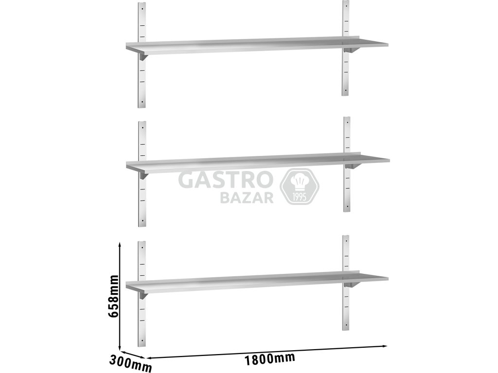 PREMIUM Nástěnná police - 1,8 x 0,3m - 3-patrová